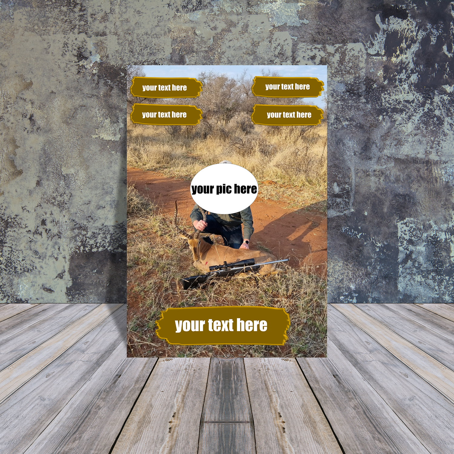 Immortalize your trophies with a high quality metal plate. Customizable with any text you would like, the size location calibre and any other special requests, you dream it we build it .